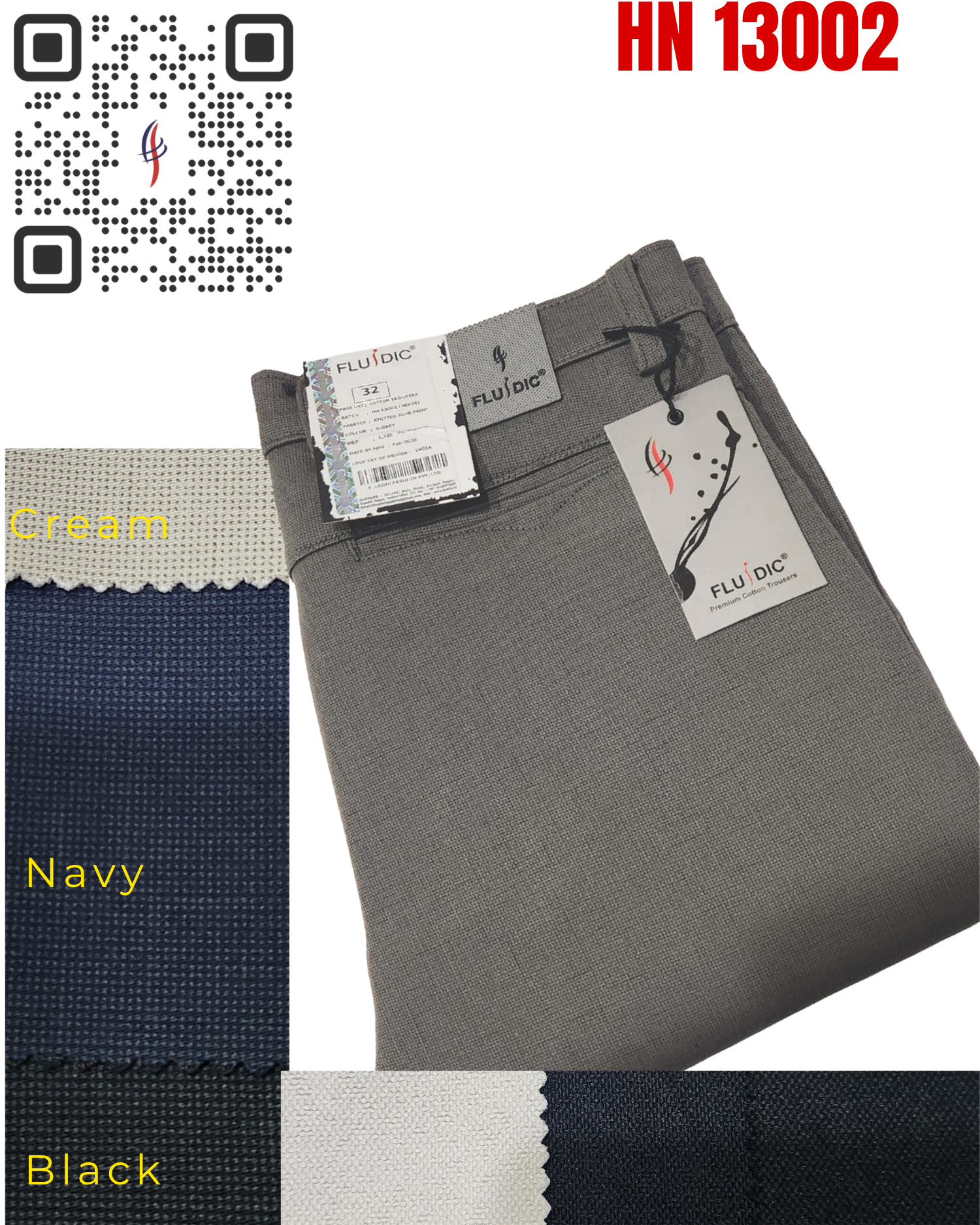 Fluidic Knitted Print Slub Cotton Trouser H N 13001 (M.R.P – 1350)